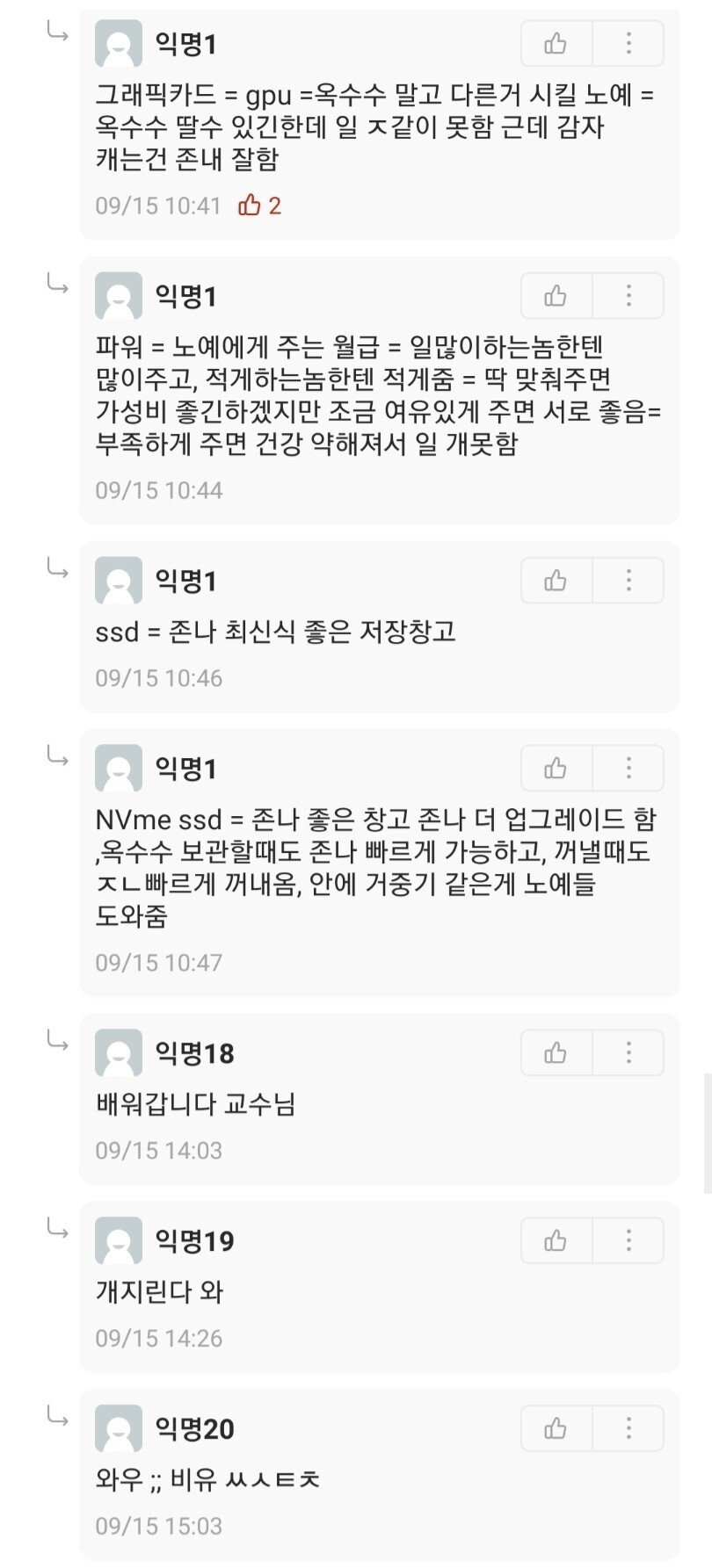 컴퓨터 구조 비유 Posted Apr 11, 2025 By clang.engineer 1 min read 컴퓨터 구조 비유 Contents 컴퓨터 구조 비유 쉽게 이해되는 컴퓨터 기본 구조한 때 인터넷에 화제가 되었던 컴퓨터를 노예에 비유해서 설명한 글.표현이 분영 거칠고 거북한 면들이 있지만, 글을 보고나서는 컴퓨터 구조에 대해 생각할 때 먼저 떠오르곤 한다. study, cs computer metaphor 구조 This post is licensed under CC BY 4.0 by the author. Share